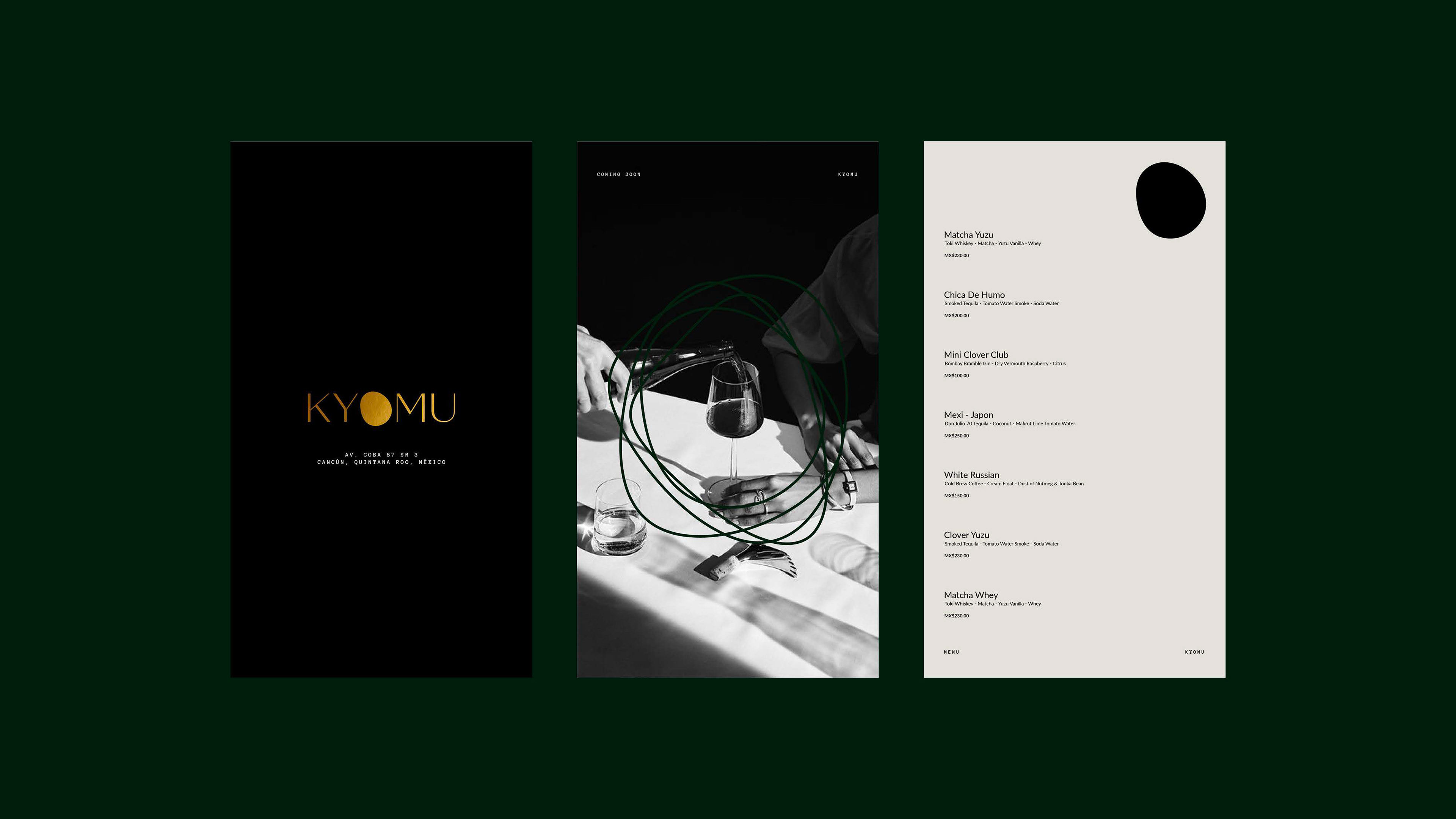At Ten10Design I crafted a refined visual identity for KYOMU, a speakeasy that blends mystery and modern elegance. The project features minimalist graphics and a muted color palette, capturing the bar’s discreet yet sophisticated atmosphere.