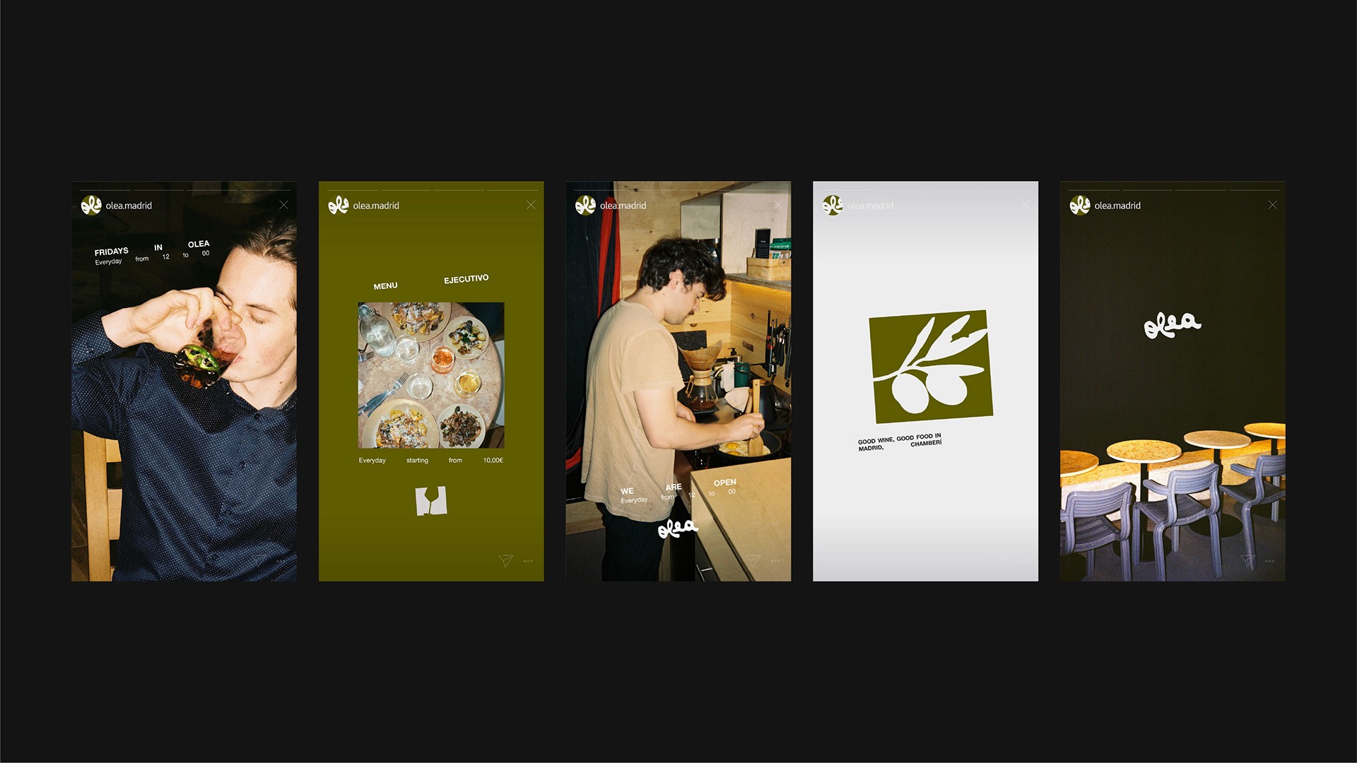 Brand Identity for Olea, a restaurant in Madrid’s Chamberí district. A handcrafted logotype and bespoke illustrations come together to form a warm, tactile visual language rooted in an artisanal, honest sensibility.